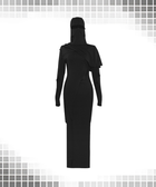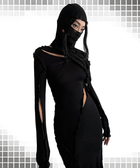 Solid Hooded High-Neck Wasteland Style Hollow-Out Long Sleeve Dress