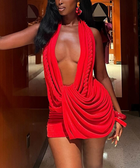 Women's Sexy Clothing, Sexy Deep V Halter Backless Bodycon Solid Color Dress, Nightout OOTD