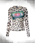 Sexy Mesh Leopard Print Round Long Sleeve Top
