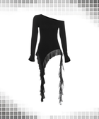 Solid Slim-Fit Street Style Asymmetric Off-Shoulder Long Sleeve Top