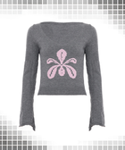 Floral Jacquard V-Neck Casual Long Sleeve Sweater