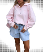 Letter Embroidery Half-Zip Loose Casual Cozy Sweatshirt