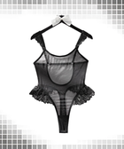 Women’s Sexy Clothing, Ruffle Trim Mesh Spliced Sheer Backless Shaping Bodysuit Lingerie, Nightout OOTD
