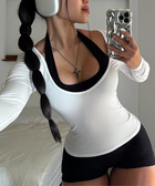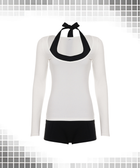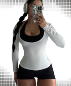 Sports and fitness long-sleeved top + halter-neck jumpsuit set