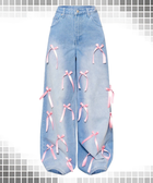 Bow Detail High-Waist Wide-Leg Street Style Distressed Loose Fit Women’s Jeans